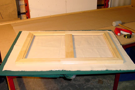 i. On a flat surface, lay stretcher on the canvas. Be sure to leave just enough canvas to stretch onto frame (around 4 inches on all sides).