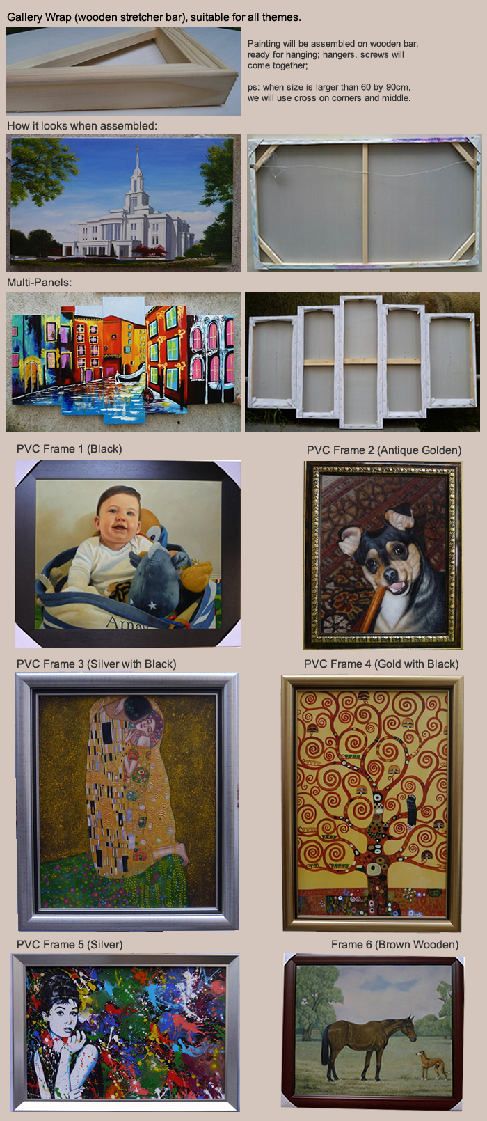 We offer framing service for every single painting,of size limited by 90 by 120cm.