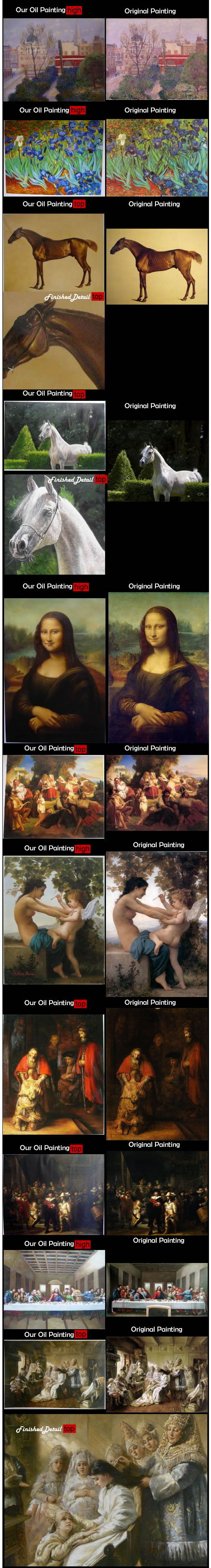 On this page you can examine the quality of our famous paintings reproductions: 100% handmade by our artists. "Top",top quality, means"it's painted by our best artist;"High",high quality ,means"it's painted by our high degree artist".No matter "top" or "high" quality,we can't make 100% same reproductions;top quality can be above 95% as you see from this listing.