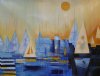 abstract sunset sailing boat
